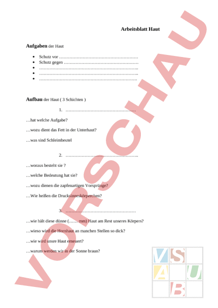 Arbeitsblatt: AB(Arbeitsblatt Haut)