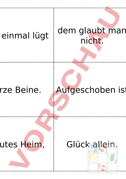 Vorlage für Memory Karten zur Festigung von Sprichwörtern.