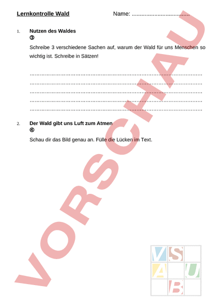 Lernzielbeschreibung, Nutzen des Waldes, Laub- und Nadelbäume, ...