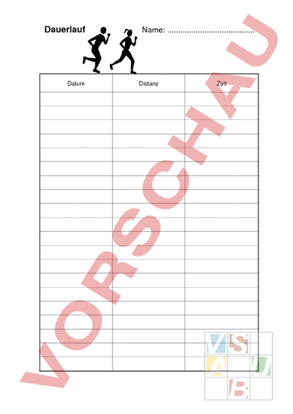 Dauerlauf Datum Name: Distanz Zeit