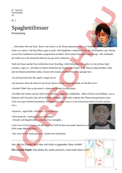 Arbeitsblatt zu Spaghettifresser von Willi Fährmann