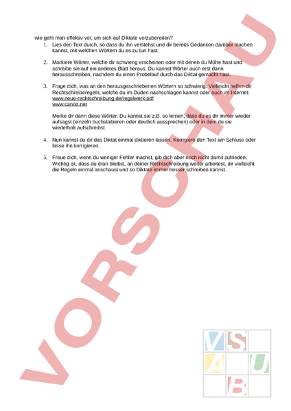 Arbeitsblatt: wie bereite ich mich auf ein diktat vor?