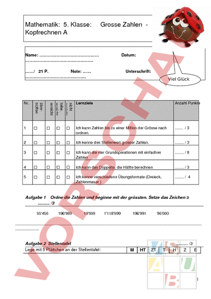 Arbeitsblatt: Lernkontrolle 5. Klasse zu Zahlenbuch