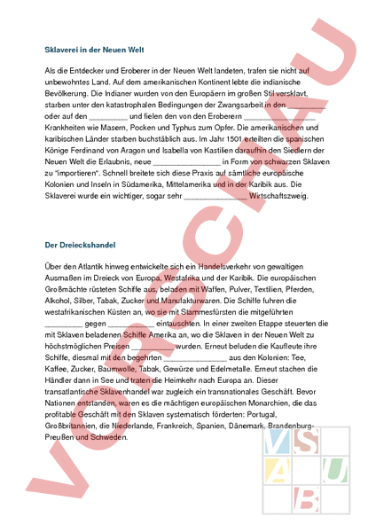 Arbeitsblatt: Sklavenhandel Lückentext