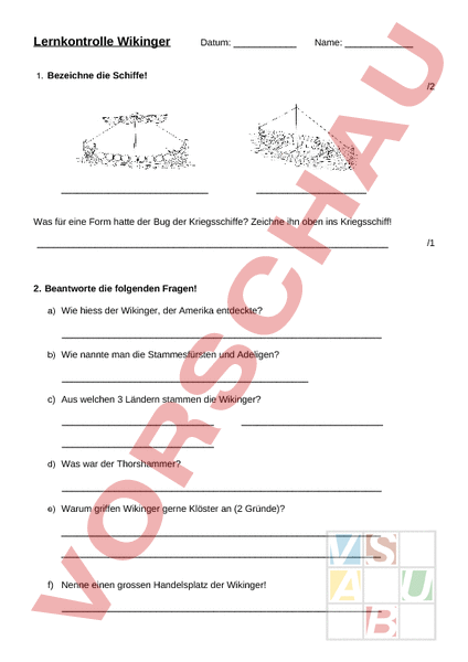 Arbeitsblatt: Lernkontrolle Wikinger