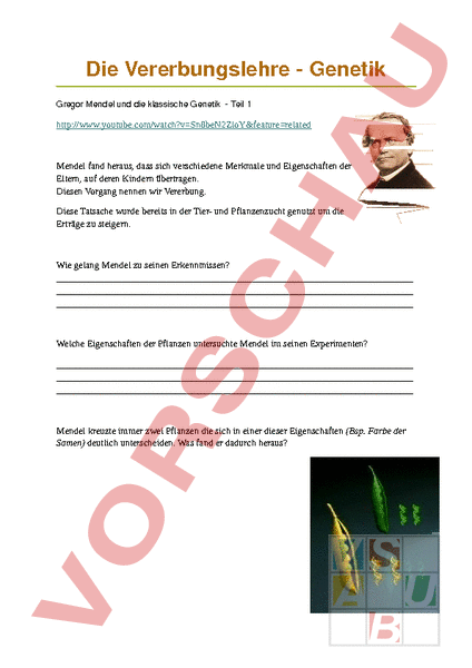 Arbeitsblatt: Vererbung beim Menschen - Mendel
