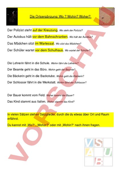 Arbeitsblatt: Ortsergänzung